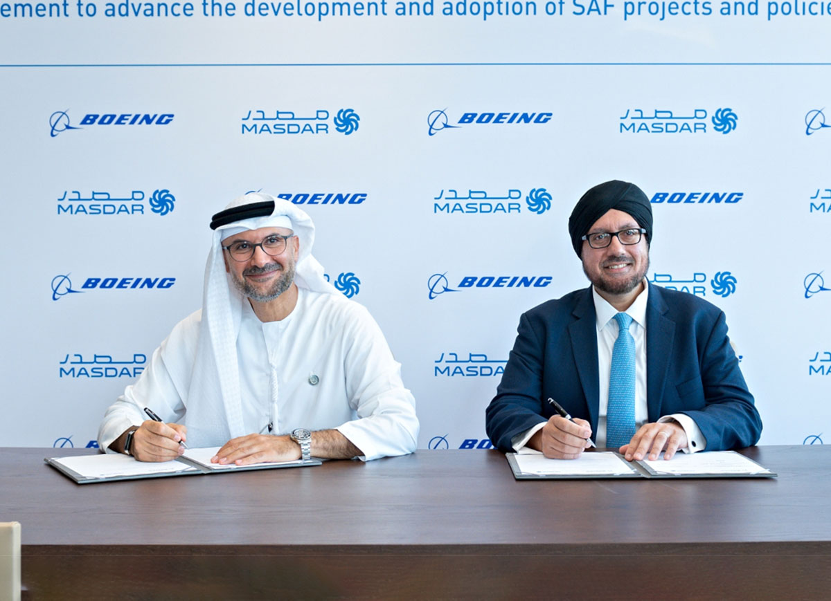 Masdar, one of the world’s leading renewable energy companies and a global leader in green hydrogen, has joined forces with aerospace giant Boeing to advance the sustainable aviation fuel (SAF) sector in the United Arab Emirates (UAE) and worldwide. This collaboration aims to further bolster the commercial aviation industry’s objective of achieving net-zero emissions by 2050.